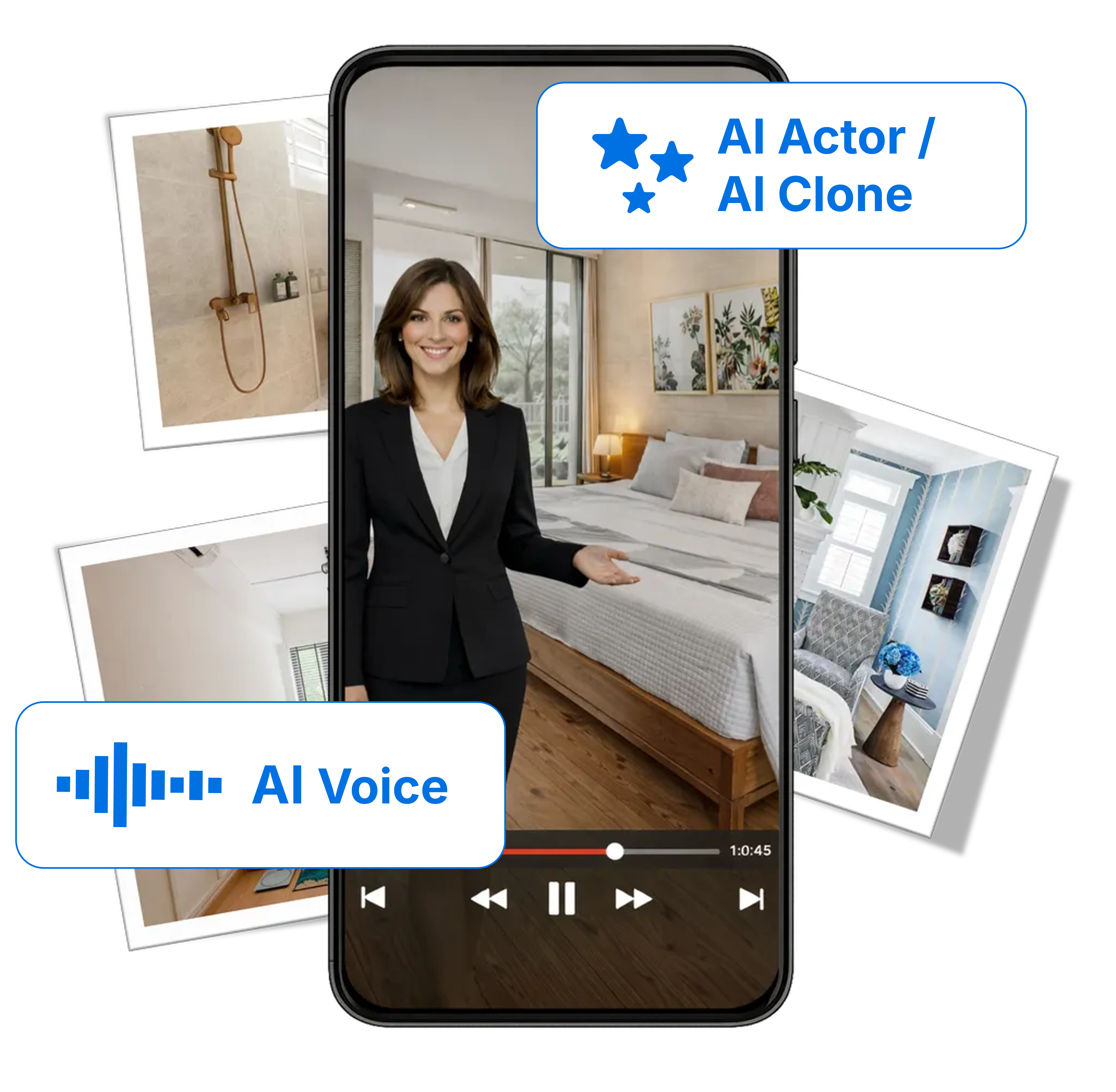Yes. You can select from a diverse range of professional AI presenters to match the vibe of your property, whether it’s a luxury villa or a modern city apartment.